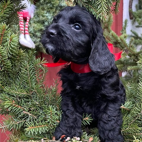 Amrikansk Cockerspaniel , gårdens clown, full av glädje och bus,älskar bollar och att sitta i knät för klapp!