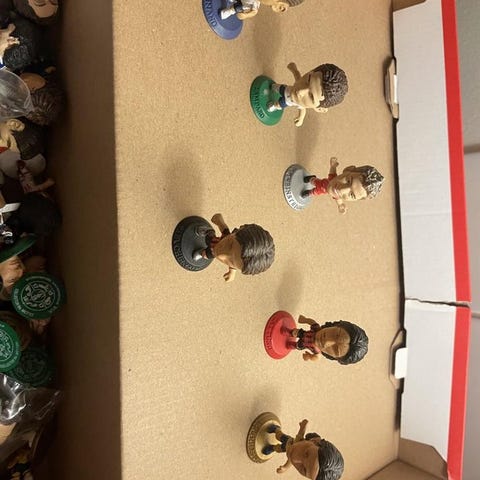 Fotbollsfigurer samling med pokaler och tillbehör