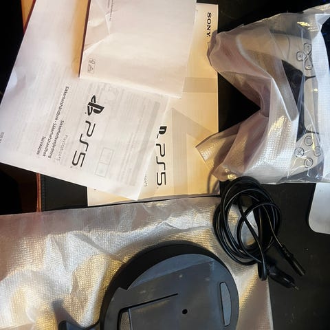 Sony PlayStation 5 spelkonsol med modern design och medföljande handkontroll.