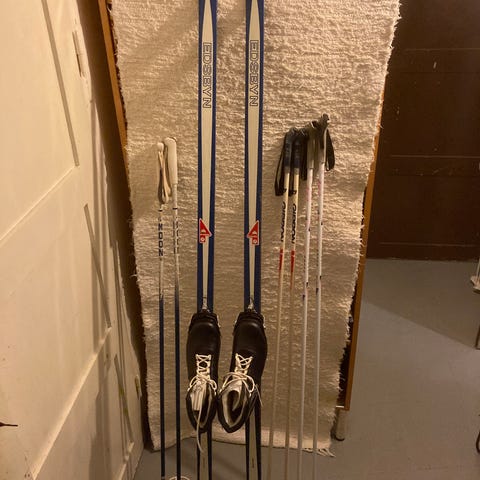 Paketpris billigare skidor pjäxor stavar. 1000 kr.