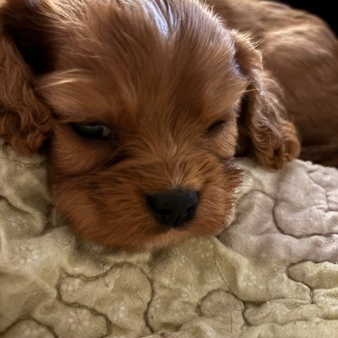 En Cavalier King Charles Spaniel med stamtavla. färg Ruby. Uppvuxen hos oss på gården sedan han var valp, snäll och väluppfostrad, älskar att vara delaktig i svampskogen samt att sitta i knät och bli klappad!