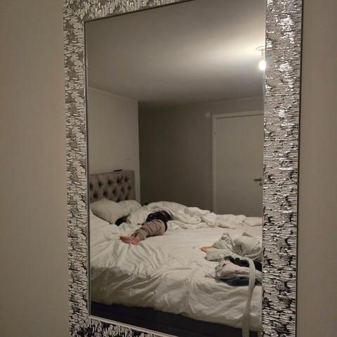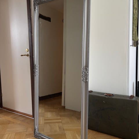 Stor spegel i silver, Jysk Dekorationsspegel med Ornament