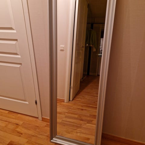 En spegel från Jysk i silver med detaljerade ram.
