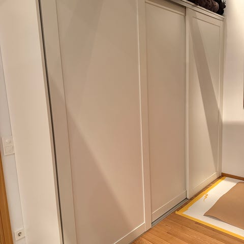 Tre stycken garderobsdörrar plus skena. Tror att det är Elfa men kan ej garantera.