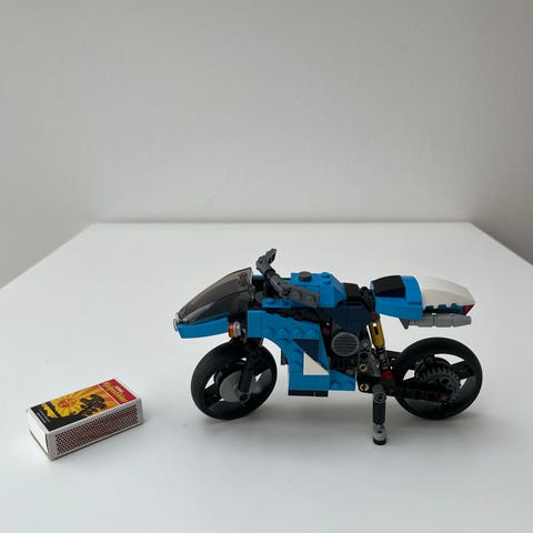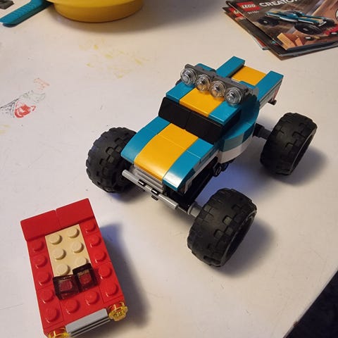 Någon bit saknades (två gråa avlånga pinnar) Notera även att det är EN model som kan byggas till tre olika bilar