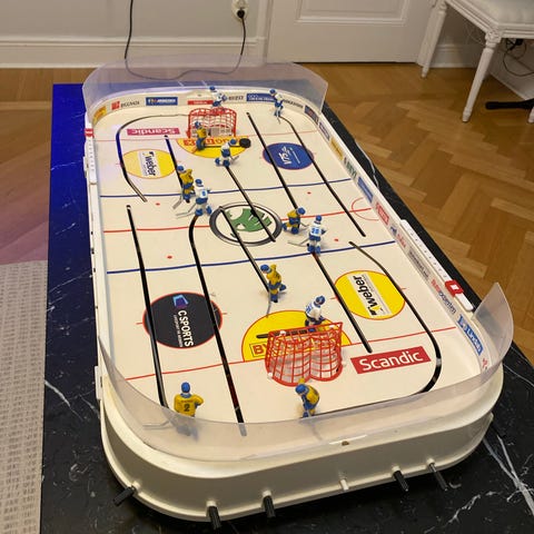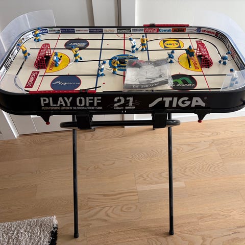 Stiga bordshockeyspel gubbar, mål och puck. Vintage. Handmålade. Finns utanför Kumla. Skickas inte.