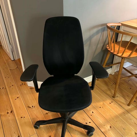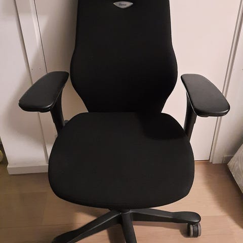 Det går att höja och sänka stolen, luta ryggstödet fram och bak och sitt delen fram och bak Armstöden går även att justera, höja, sänka.