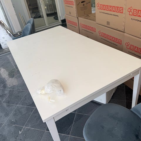 Säljer mitt ikea bord inklusive 6 st stolar till. Bordet går att förlänga (+40cm) med en till bordskiva. Lätt slitage finns från allmän användning men inga stora skador. Kommer från ett rökfritt hem men kan finnas spår av katthår då en katt hat bott i lägenheten. Priser går att förhandla.