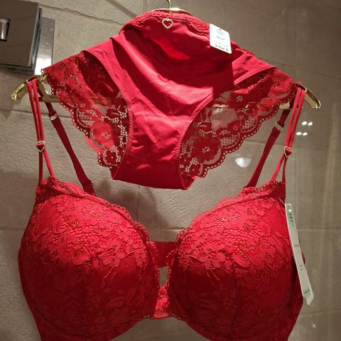 Fri frakt! 3 delar! Fint set ceriserosa bh stl 85D + 2 par trosor stl M 40/42