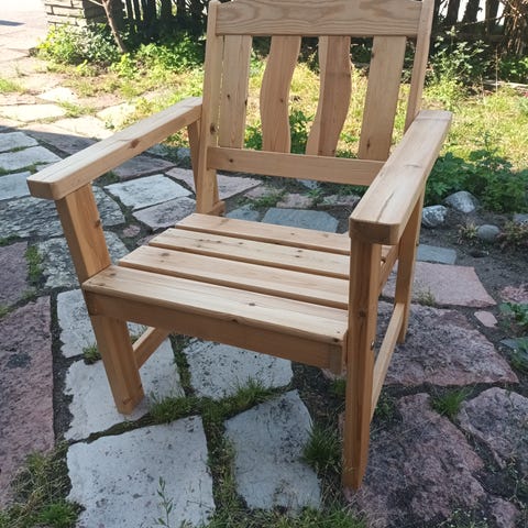 Bryggeri sett bestående av ett bord, bänk och stolar med sits och ryggstöd i trä samt underrede i metall. Möbelsetet är utformat för utomhusbruk och passar för trädgård eller balkong. Setet har en enkel och funktionell design som går att fälla ihop.