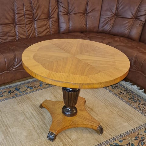 Träsatsbord i tre delar. Varje bord har en dekorativ form och med slitage och patina. Passar som sidobord eller förvaring i olika rum.
