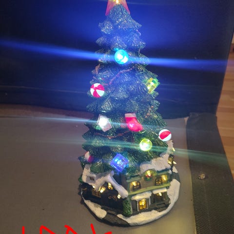 Mässingsljusstake i form av en julgran med plats för fyra ljus. Passar för användning under julmånaden.