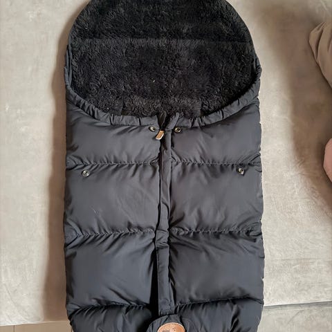 Grön åkpåse från Mini Dreams. Åkpåsen har öppningar för barnvagnens sele.