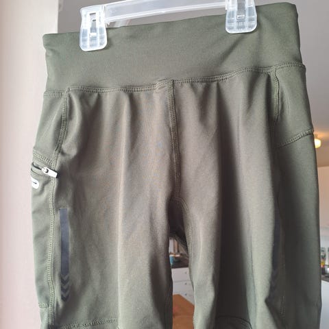 Snygga träningstights med leopardmönster i blått. Tightsen har mesh-paneler på baksidan av knäna och en ficka med dragkedja baktill.
