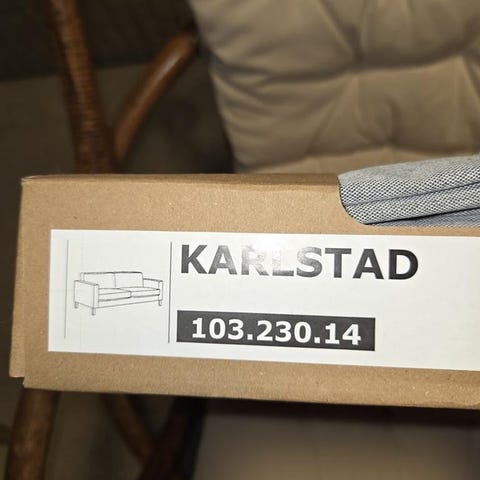 Stilren Karlstadsoffa från IKEA, klädsel ljusgrå Isunda.