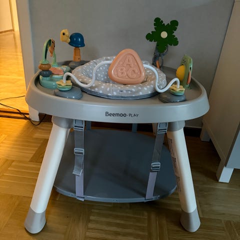 Beemoo PLAY Explore 3-i-1 lära-gå-stol är utvecklad för att främja barnets motorik, balans och styrka, men också för att vara underhållande under tiden. Här kombineras praktiska funktioner med lekfull design: en speldosa som spelar olika ljud, svängbara framhjul och ett bekvämt, höjdjusterbart säte.