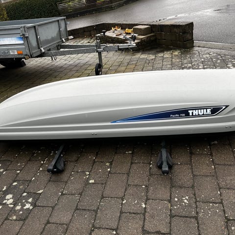 Säljer en takbox äldre årsmodell men fullt fungerande, förvarad under tak i carport så den är i gott skick men en gasdämpare som hjälper till att öppna och stänga fungerar inte.