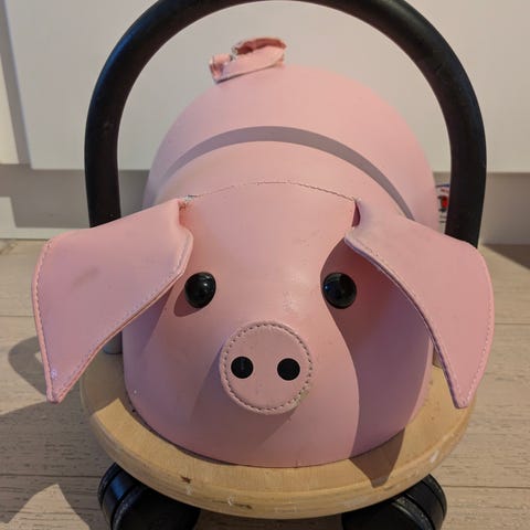 Wheely Bug Humla / bi. Åkleksak. Om detta föreställer ett bi eller humla får man lämna åt fantasin. Utrustad med känselspröt längst fram. Färgen är given, svart med gula ränder. Det unika med en Wheely Bug är att den kan rulla framåt, bakåt, åt sidan och runt sig själv. Dessutom har den en låg tyngdpunkt, så det är svårt för ditt barn att välta den, till skillnad från andra fordon.