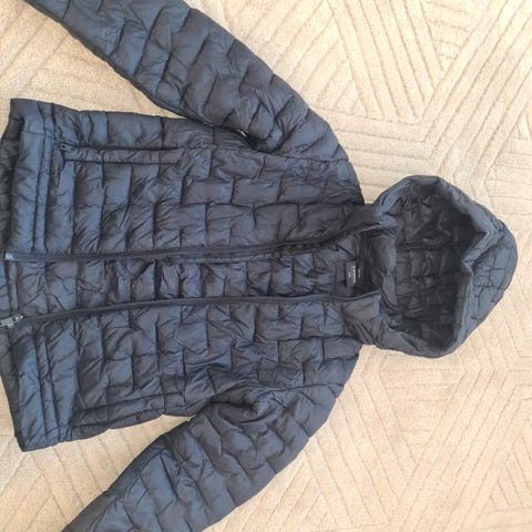 Grå jacka för pojke i storlek 152. Jackan har dragkedja och är vadderad för extra värme.