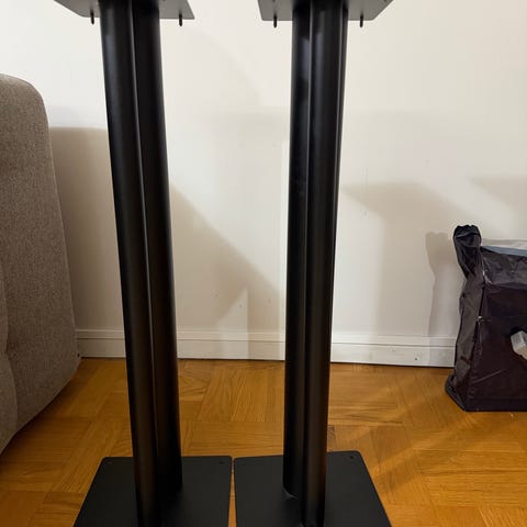 Högtalarstativ, svart metall, glaslager.