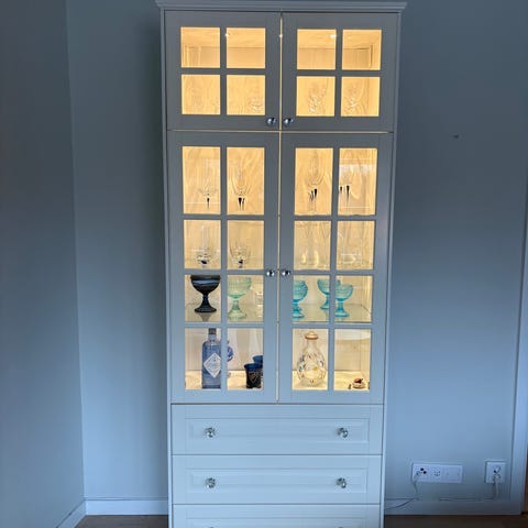 Kvalitetsmöbel i vitlaserad ek och hyllplan i härdat glas