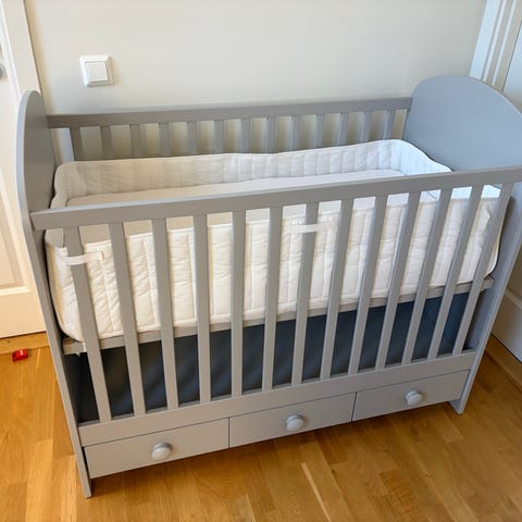 Barnsäng: Vit Spjälsäng från JLY + Madrass