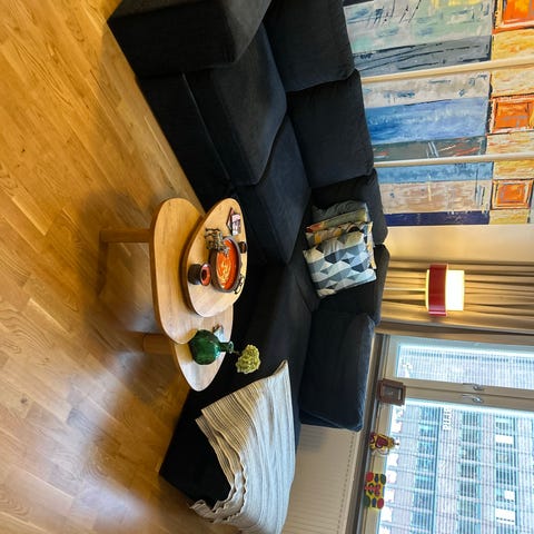 Jag bor högst upp m hiss o soffan får plats i hissen.