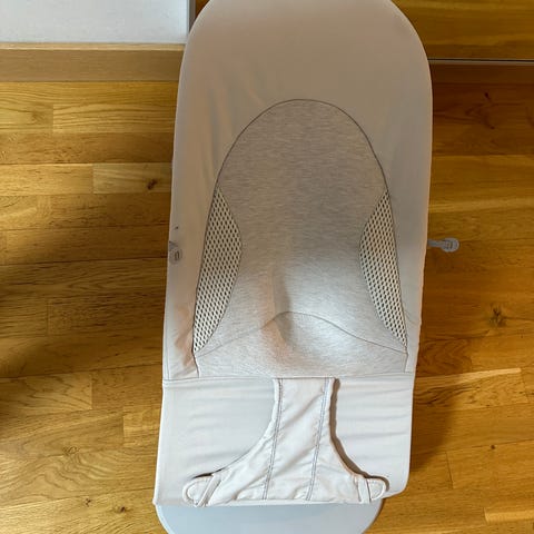 Babybjörn Babysitter Bouncer i beige färg. Tillverkad för att ge stöd och komfort till spädbarn vid vila och lek.