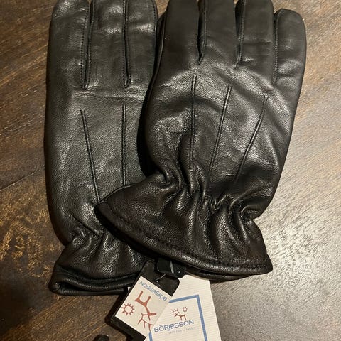 Herrhandskar i svart läde. Skalet består av läder, medan stoppningen/fyllningen är 40% cotton och 60% akryl.