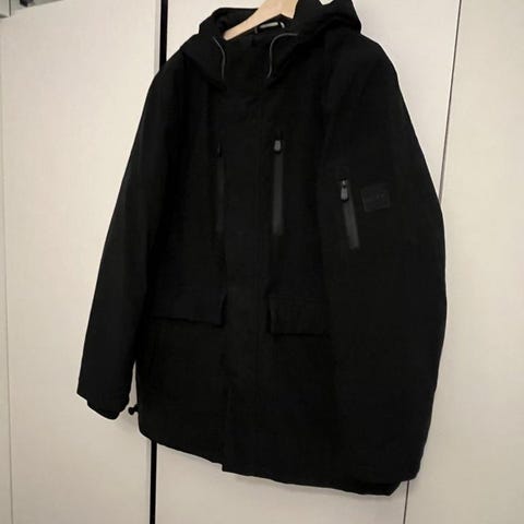 Svart fuskpälsjacka från Ellos i storlek 50.