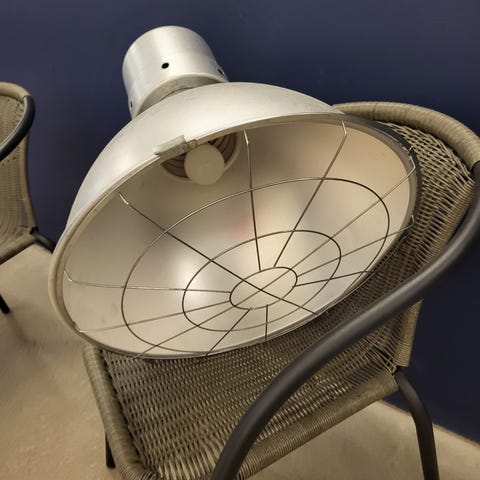 Industrilampa i plåt, bra skick. Storlek höjd ca 40 cm och bredd ca 40 cm.