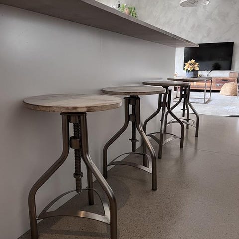 Två olika höj- och sänkbara barstolar med fotstöd.