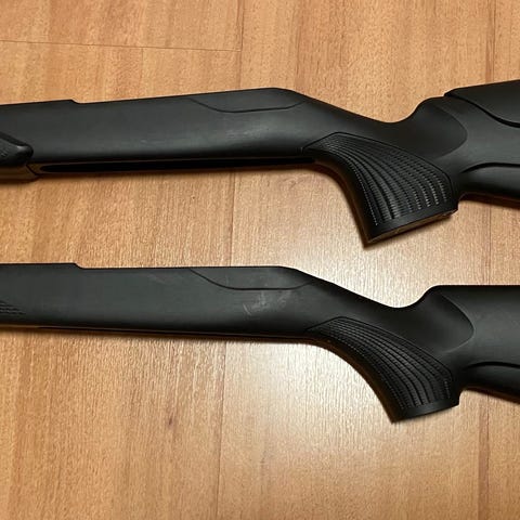 En syntetkolv som varit till en tikka t3 battue light. Hål finns från en tidigare kolv-kams montage. Och bakkappan är av plast (från en tikka t1x)