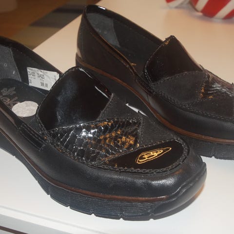 Tamaris Loafers och seglarskor i storlek 38, svart färg. Skorna har en låg klack och metallbeslag framtill. Passar för vardagligt bruk.