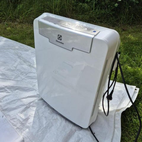 Pure A9 luftrenare i grå färg med PureSense-system som kontinuerligt mäter luftkvaliteten inomhus. Justerar luftflödet automatiskt för att säkerställa hälsosam inomhusmiljö. Utrustad med skräddarsydd filtrering för personliga behov över säsonger med 360-filter och 5-stegsrening.
