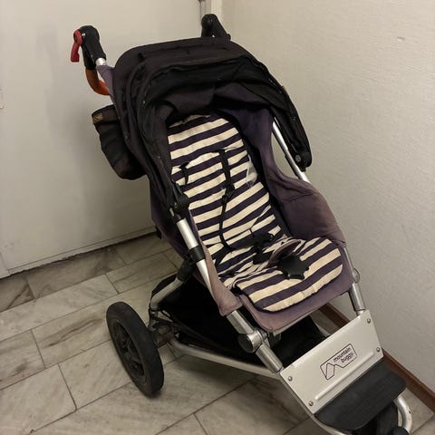 Tyget är solblekt. Vagnen är i gott men använt skick.