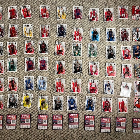 Samling av sportkort med olika motiv och spelare. Det är olika spelare från olika lag, 136 st kort.
