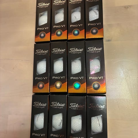 Säljes fyra dussin nya Titleist pro v1 golfbollar till förmånligt pris. Bollarna är reklamfria och årets modell. Samtliga dussin i original förpackning.