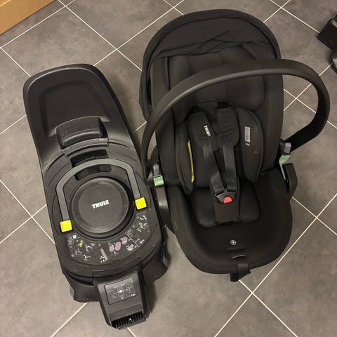 Helt ny grå bilbarnstol från Thule, med ett fotstöd som på bilden. Nypris 3500