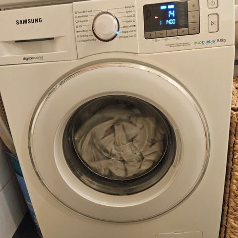 Samsung mikrovågsugn i svart färg. Utrustad med digitalt styrsystem och roterande tallrik för jämn uppvärmning. Passar för uppvärmning och tillagning av mat i hemmet.