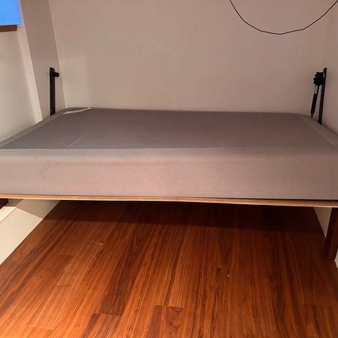 Extra självbyggd ram för madrass utan ben kan följa med.