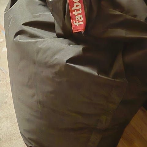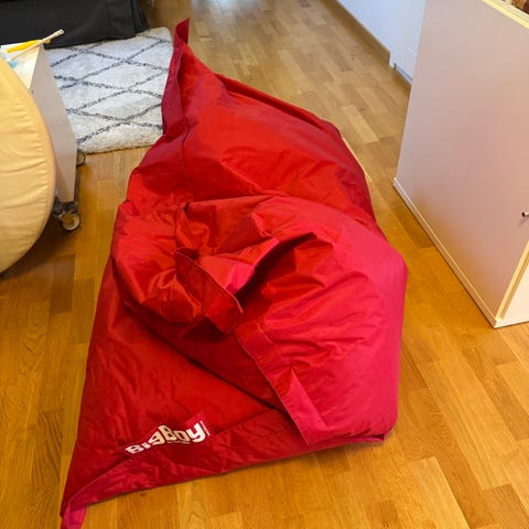 Turkos saccosäck. Ett märke mitt på. Ingen påverkan på användningen.
