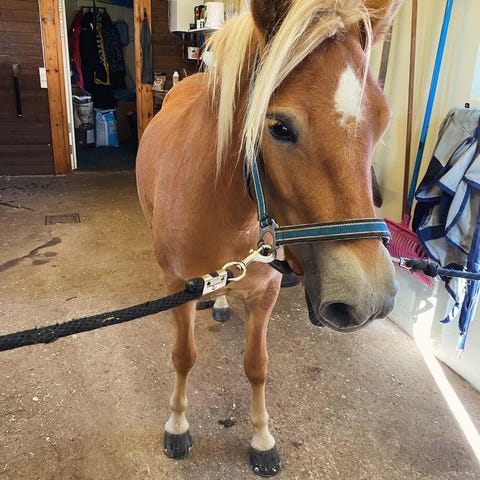 Urgullig ponny söker ny ryttare! Pinnen är super snäll, älskar skogrundor, träning på paddock och hoppa. Går både på lösdrift och kan stå på box. Just nu barfota och det går jätte bra. Han har haft en skada på v fram böjsena därför triamgelmärkt men inget som du märker av i ridningen. Emma