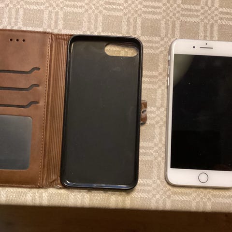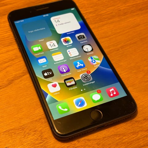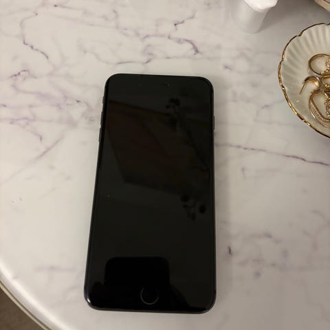 Svart iPhone 8 Plus med 64 GB lagring och 75% batterihälsa.