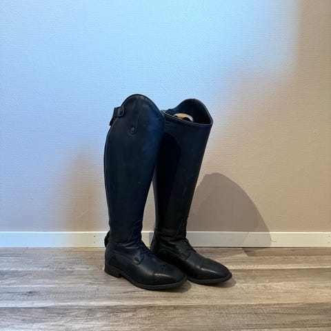 Ridstövel i mjukt läder med skinnfodrad insida. Lös innersula i skinn. Resår utmed dragkedjan.