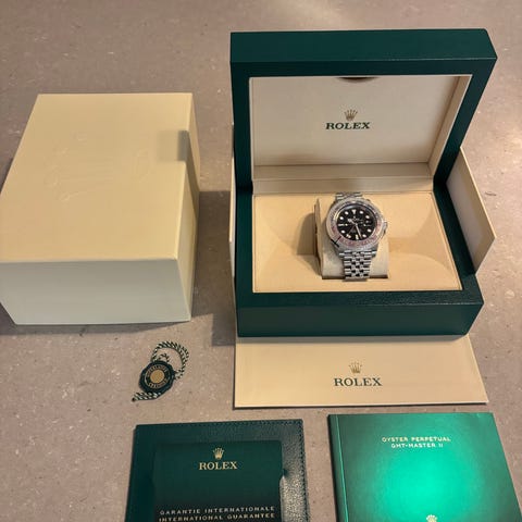 Rolex Gmt Batgirl årsmodell 2025 köpt hos svensk AD i fantastiskt skick. Naturligtvis vis fullset.