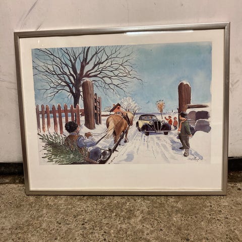 Säljer två st tavlor med tryck av julmotiv gjorda av Lillan Michelin. Ramarnas mått är 36x46. Den ena ramen har en liten färgskrapning på ena långsidan.
