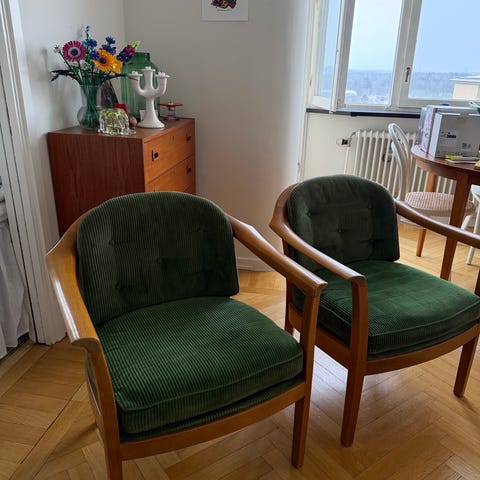 2 FÅTÖLJER, "Ego", design Carl-Henrik Spaak för svenska IRE Möbler, 2000-tal. Robust konstruktion och avtagbar klädsel. Otroligt vackra och speciella. Värderade av Bukowskis till ett högre pris. Båda fåtöljerna är i nyskick. Inga fläckar eller märken. (Nypris ca 24000kr/st). Säljes för 1500kr/st.