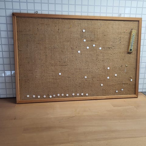 Anslagstavla med klammrar, perfekt skick. Mått: 105x55 cm.