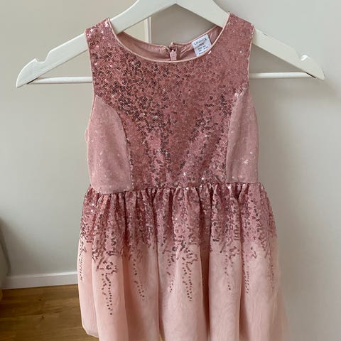 Fest klänning för flicka i storlek kan passa 3-4-5 år 104-110. Kan Klänningen är rosa och tillverkad i chiffongmaterial.
